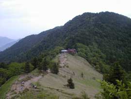 12:50 介山荘 「大菩薩峠」と書いてある木が立っている。 ここも営業中。 食事ができるし、ビールも売っている。 ここから急に展望が開ける。 山座固定盤があり、良ければ「八ヶ岳」「南アルプス」が見えるようだ。 今回は「八ヶ岳」「南アルプス「「富士山」、眼下には「上日川ダム」、塩山市外が見え、なかなかの景色。2年前はガスがかかっていてぜんぜん見えなかったが、今回はなかなか。 風は強かった。 |