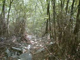 09:40 ツツジ新道登山口 標識が建っているのですぐにわかる。 薄暗いところを登っていくが、すぐに明るい樹林帯のなだらかな道が続く。 歩き始めにはちょうどいい。 |