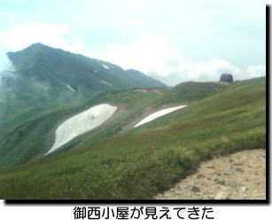 ![]() 尾根上に建つ『御西避難小屋』に到着。 今日は管理人さんが管理人室に居た。 見た目70歳台くらいのおじいさんだがめちゃくちゃ愛想がいい。 あまりこの小屋に泊まってくれる人がいなくて寂しいとの事。 『大日岳』への分岐地点で『大日岳』に登る人はここに宿泊するんじゃないか?と思うけど、皆『大日岳』には登らないのだろうか? 「ゆっくりしなさい」と言われるけど、これから『大日岳』を目指すと言うと「行って来な、行って来な」と嬉しそう。 サブザックは持っていなくザックの中身を出し、必要なものだけを入れて行こうとすると、おじさんのサブザックを貸してくれた。 一眼レフカメラを持っていることを知ると「途中池が見えるからそこをしばらく藪漕ぎすると道があって池の側まで行ける。そこからの逆さ『大日岳』の写真が撮れると教えてもらった」。 荒らされると困るから道は作ってないそうだ。 ![]() 一旦鞍部まで下り『大日岳』への登りが始まる。 この登山道には花があちらこちらに咲いていてちょっとしたお花畑になっているが、「チングルマ」の大群生しているお花畑が得に見事だった。 山頂に近づくに従ってだんだん傾斜がきつくなり、軽身の体でも時々休憩をしながら山頂にたどり着く。 天気がよければ『佐渡ヶ島』まで見えると言っていたけど、残念ながらそこまで天気は良くない。 けど霧に巻かれず展望がばっちりだが、やはりどれがなんの山か知らないことには感動が少ないなぁ。 けど飯豊連峰の最高峰に登れたことで達成感は十分。 あまり山頂に長いはせず早々に引き返すが、先ほどの鞍部に着く頃には雲行きが怪しくなりだし、すっかり霧に巻かれてしまった。 なんか明日は雨が降りそうな雰囲気だった。 小屋に着くとテント場にテントが張ってある。 きちんとしたテント場であまり自然保護を考えなくても良さそうなテント場だった。 これなら次回はテントでも良いんじゃないかな。 「あまり泊まる人がいない」と言っていたけど今日は泊まる人が多いみたい。 指定された2階の寝床に行くと残念ながら左右に人が寝るようだ。 ザックを置く場所は離れており、昨日の『三国岳避難小屋』より混雑していて快適さはない。 この小屋はコンロ使用は1階で使用との事。 夕食道具を持って下に下りると1階はすでに食事を始めている人で座るところがない。 小屋の外は明るく霧も晴れたみたいなので外で食べるかと外に出ると、管理人さんが「何してるの?」と外に出てくる。 「混んでいるから外で食べる」と言うと「何言ってんの?そんなんじゃダメだよ」と。 「せっかく山小屋に泊まってるんだから他の人と山の話をしながら食事しないと」 「お兄さんは写真が好きなんでしょ。写真が好きなお客さんいるからその人と話しなさい」 等と叱られ、小屋に入ると俺の場所を空けさしてくれ写真が好きなお客さんを紹介してくれる。 その人が中心になり、他のお客さんと山の話が始まり、見ていないのでわからない「天地人」のオープニングはどこで撮影したとか写真や『飯豊山』、『イイデリンドウ』のことなどの話を聞いての夕食となった。 『リンドウ』自体どういう花か知らないけど、5・6枚の花びらで花びらの間に何も無いのが『イイデリンドウ』なのだそうだ。 長い居になったので缶ビール1本では足りなくなり、350mlが1000円する缶ビールだけど、管理人さんにサブザックを借りたことだしお礼の意味でビールを買うと、管理人さんに言うと「え?1000円だけど良いの?」とびっくりされた。 お礼(?)につまみをあげると言われるが、つまみはあると言うと試供品の小さなビールをくれた。 「他の人には内緒だよ」との一言と共に(笑) すっかり気持ちよくなり、小屋の中が寝る雰囲気になると寝床へ行き寝る準備。 必要なものを枕元に置いて寝袋の中に入って寝る。 いびきがうるさい。 しかも左右の人がいびきをかき、特に左隣の女性が一番うるさいいびきをかく人。 なかなか寝付けず耳栓を探すも「しまった、ザックの中だ」 取りにいくのもザックは遠くで面倒だし。 あまり熟睡できないまま朝を迎えた。 【 3日目 】 いびきのうるささも眠気には勝てず、熟睡し始めた頃になると小屋が騒ぎ出す。 皆、行動時間が早い。 『大日岳』は昨日登頂を済ませてあるので、ゆっくり寝ていようと思ってもそうもいかず。 天気が悪そうで「雨降るかも」なんて声が聞こえてくる。 気になり外を見ると確かに霧に巻かれてしまいどんよりとした外だ。 朝食を食べるに下へ降りると半分以上の人は出発した後だった。 広々とした1階でのんびり朝食を食べていると「熱中症対策」と言いながら、管理人さん自家製の梅干を1人1粒づつ配っている。 当然俺も1粒いただいた。 1日目に宿泊した『三国岳避難小屋』で『尾西避難小屋』から先は花が素晴らしいと聞いていたので楽しみにしていたのだけど、残念ながら霧で真っ白、10m先も見えないほどで髪の毛が濡れるほどの濃い霧が漂