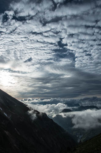 夕暮れまで酒を飲みながらの〜んびりと過ごそう、そのためにこの時間に着いたんだから。 まずは昼食のレトルトカレーを温めて・・・ 「・・・ない・・・」 「・・・・ない・・・・」 「・・・・・ない・・・・・」 「ガスコンロがな〜〜〜〜〜い〜〜〜〜」 何度も何度も同じところを何度も何度も探したけれどガスコンロがない、認めることができるまで数分・・・忘れてきた。(家に帰ればベットの下に落ちてました) レトルトカレーを温める事も、コーヒーを飲むことも、焼酎お湯割を飲むことも、おつまみを作ることも何にもできない。 少しの間、うなだれていたけれど忘れてしまったものはしょうがない、ひらきなおるしかない。 夕食は『五竜山荘』で食べよう、カレー大好きキレンジャーなので『五竜山荘』の名物カレーを今回も食べようか悩んでいたんだから「食べろ」と言うことだろう。 焼酎をお湯割にはできないが水割りでもかまわない、つまみは作れないがお菓子の「じゃがりこ」がある。 コーヒーは買おう。 など、なんとかなるが、食料がただの荷物となり、重い思いをしてまた背負って帰らなければ行けないのが悲しいなぁ。 缶ビール購入ついでに夕食の手続きをして、夕食時間のPM5:30まで酒を飲みながら、そして念願のレベッカ「Maybe Tomorrow」を聞くと言う夢を叶えながら(涙は出ないが)、テント場でまったりと過ごす幸せの時間。 しかしだんだんと風が冷たくなり、たっぷりと着込んでも寒いのでテントの中へ退避、 「もう9月以降のテント泊はやめようか、テント泊は8月までにして9月以降は小屋泊まりの山登りに路線変更しても良い時期と年齢じゃないかなぁ」 ![]() と思ったほど山の寒さがつらく感じ始めた。 お腹いっぱい名物カレーを食べ、さらにカレーをつまみに缶ビールを飲んだせいか、食前のお酒と食中のお酒でテントに戻った時にはすっかりと酔っ払った。 予定ではスマホで映画を見ながら焼酎を飲んで夜を過ごそうと思っていたけれど、 睡魔には勝てずそのまま就寝。 夜行バスでほとんど寝てなかったから無理もない、夕焼けはガスに巻かれてなさそうだし。 風がうなっている。 テントがバタバタを音を立てて揺れている。 また風が強いのか 明日は雨かなぁ〜 俺は雨男になったんかなぁ〜